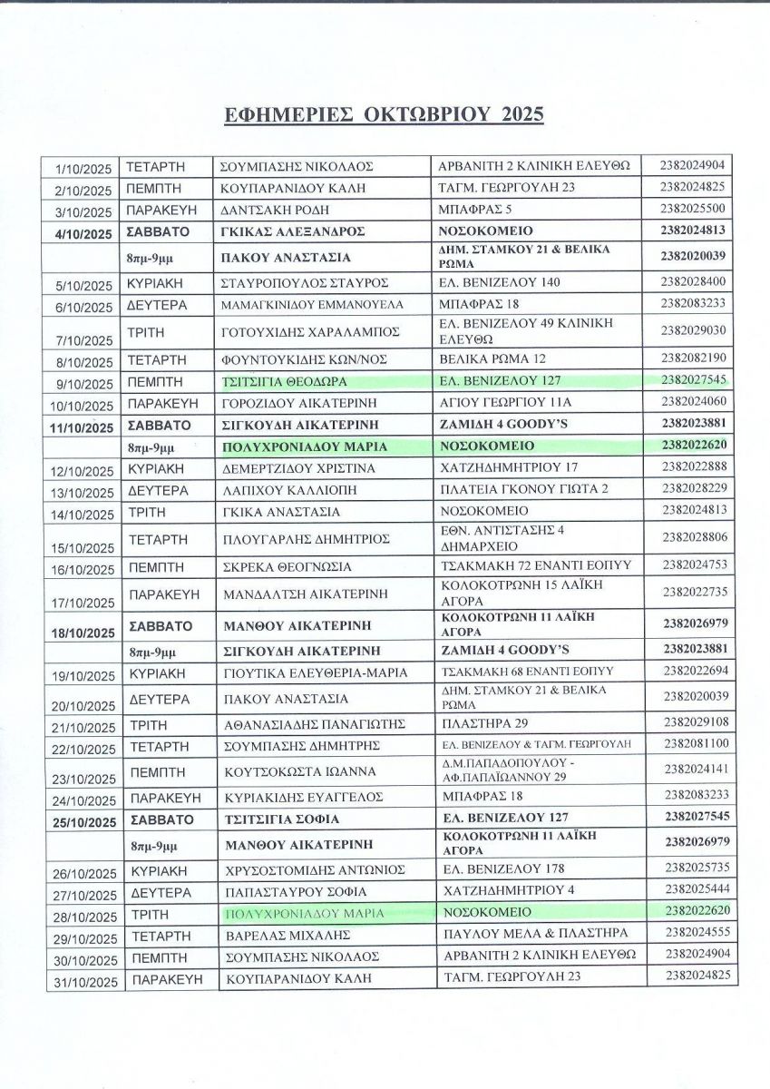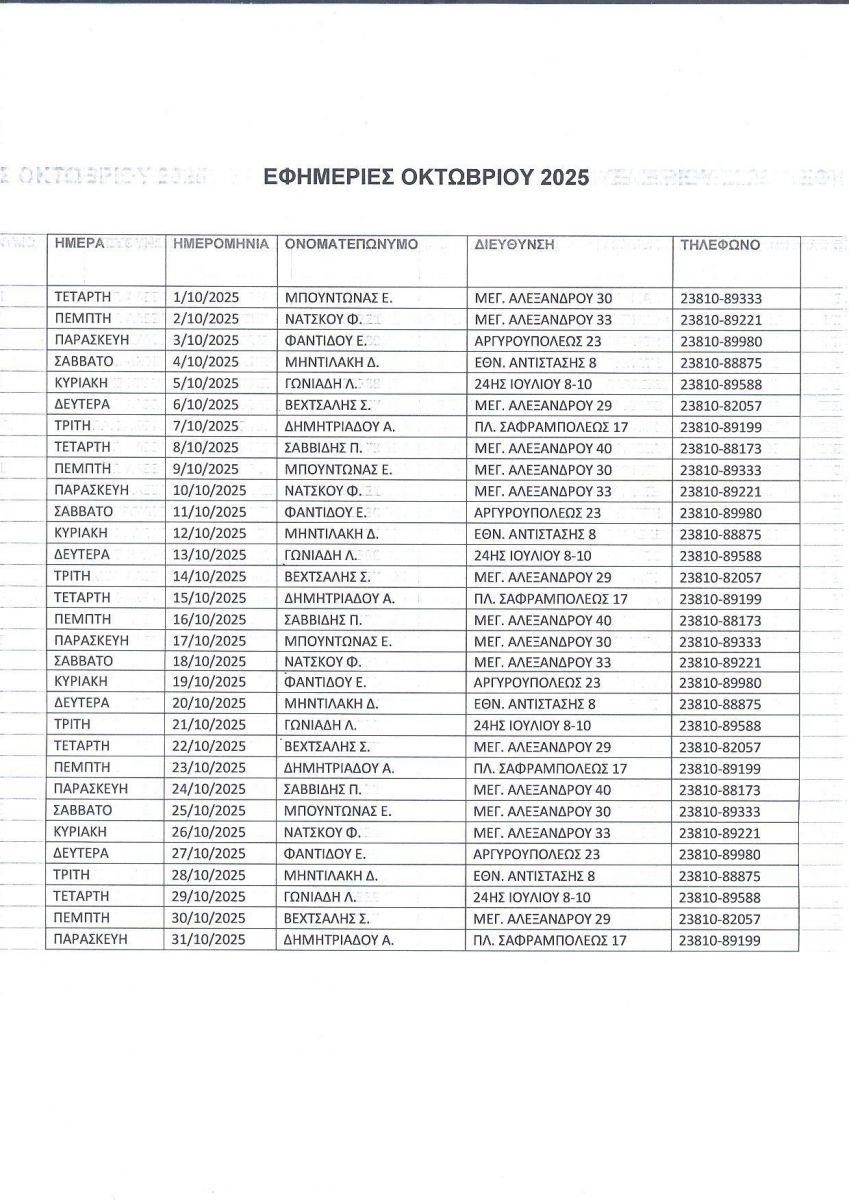 ΕΦΗΜΕΡΙΕΣ ΟΚΤΩΒΡΙΟΥ 2025