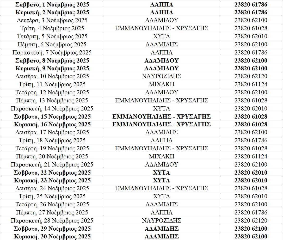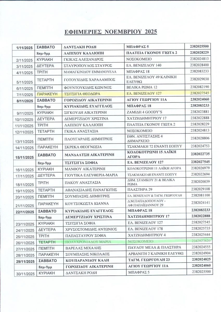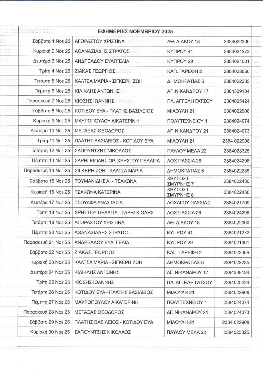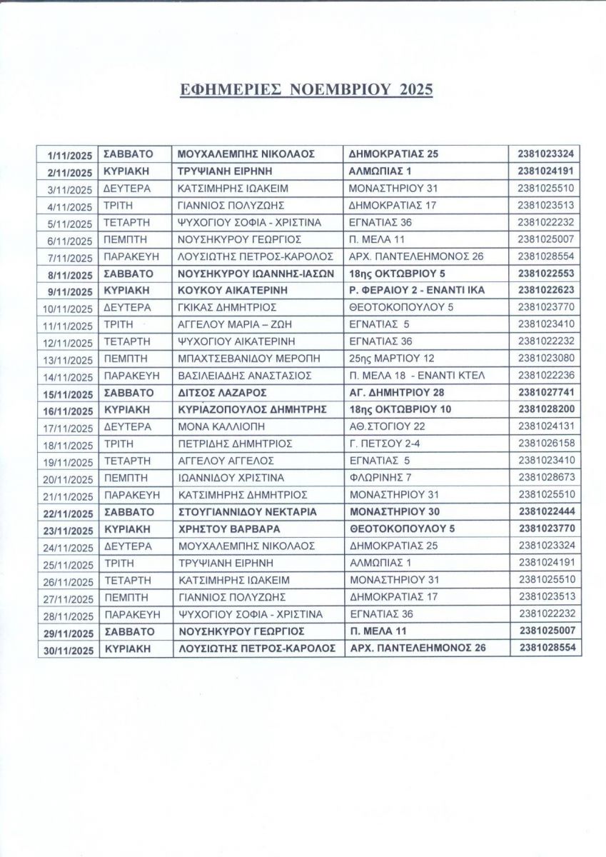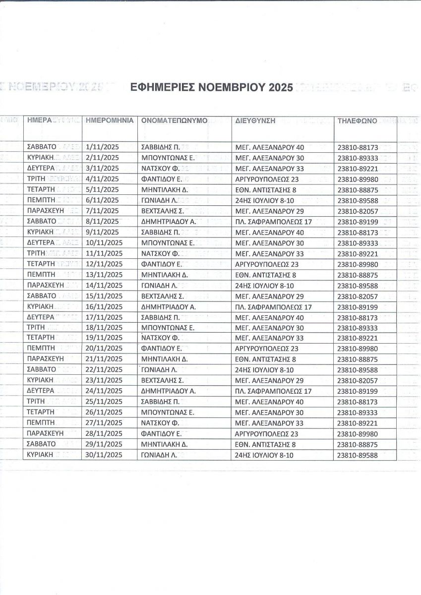 ΕΦΗΜΕΡΙΕΣ ΝΟΕΜΒΡΙΟΥ 2025