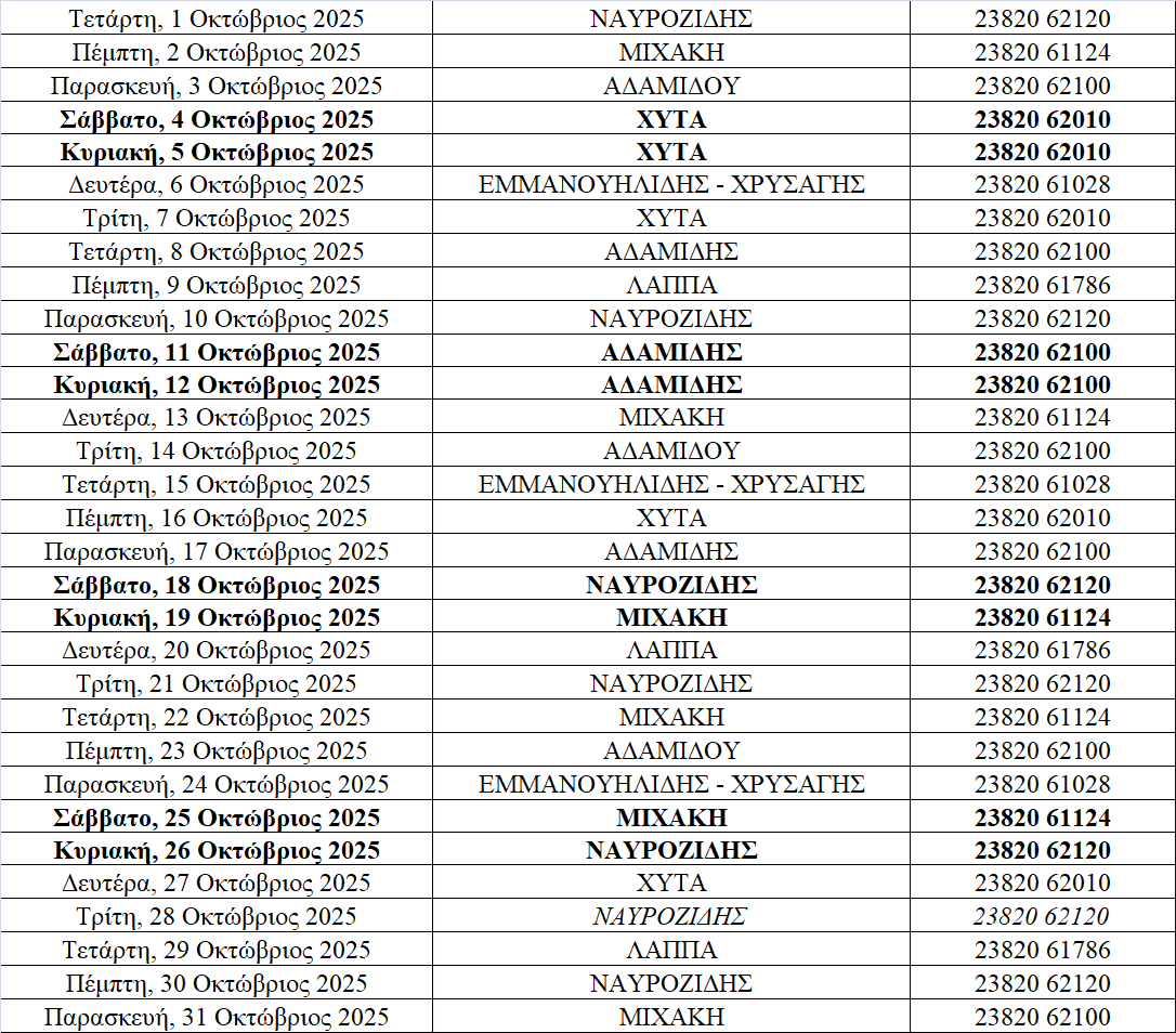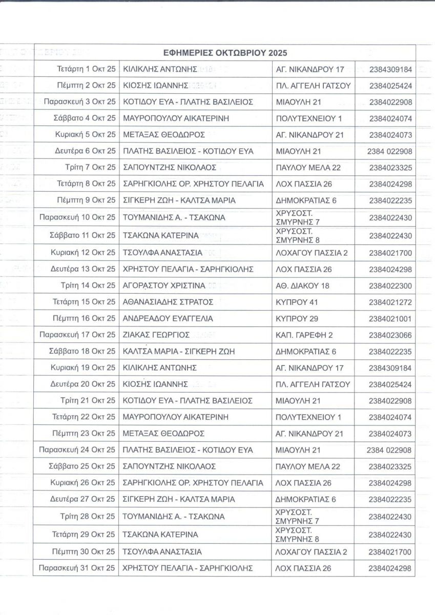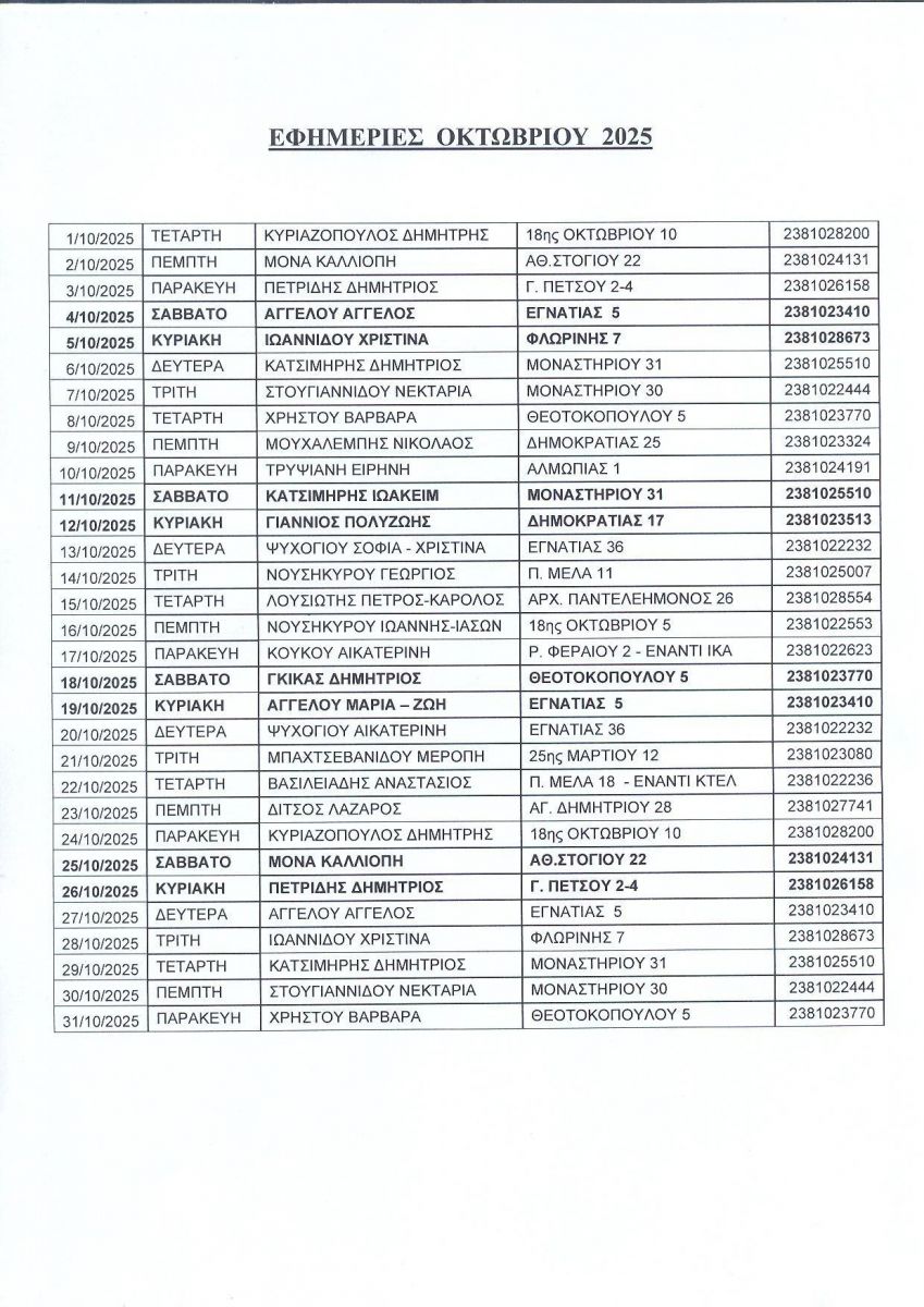 ΕΦΗΜΕΡΙΕΣ ΟΚΤΩΒΡΙΟΥ 2025